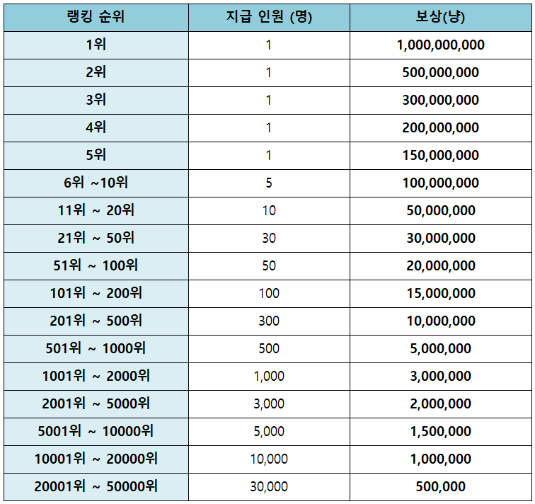 ※ 기간 내에 수령하지 않은 랭킹 보상은 재지급되지 않습니다.