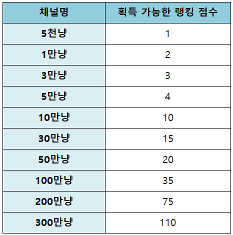 - 각 채널 별 판수 진행에 따라 빙수를 모아서 랭킹 점수를 올려주세요!