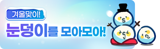 각 채널 별로 맞고도 즐기고, 눈덩이를 모아서 본격적으로 겨울을 준비해보세요~!!
