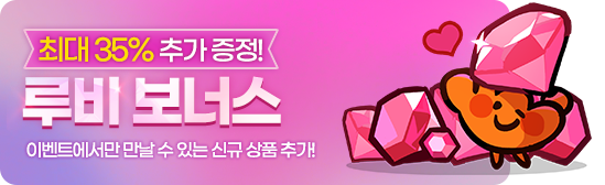 기간 중 최대 35%의 루비 보너스 혜택을 받을 수 있는 절호의 기회!